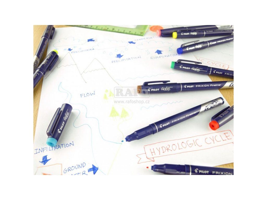 První gumovací liner ve 12 barvách. Pro psaní, kreslení, vybarvování, psaní do šablon. Ideální do školy, kanceláře i na doma. Termosenzitivní inkoust stejně jako u ostatních produktů z rodiny Frixion. Odolný polyacetalový hrot. Guma integrovaná v zakončení víčka. S pohodlnou úchopovou zónou. K dispozici ve 12 barvách. Průměr hrotu: 1,3 mm. Šířka stopy: 0,45 mm. Jednorázový, nelze dokupovat náplň.Doplňkové parametry