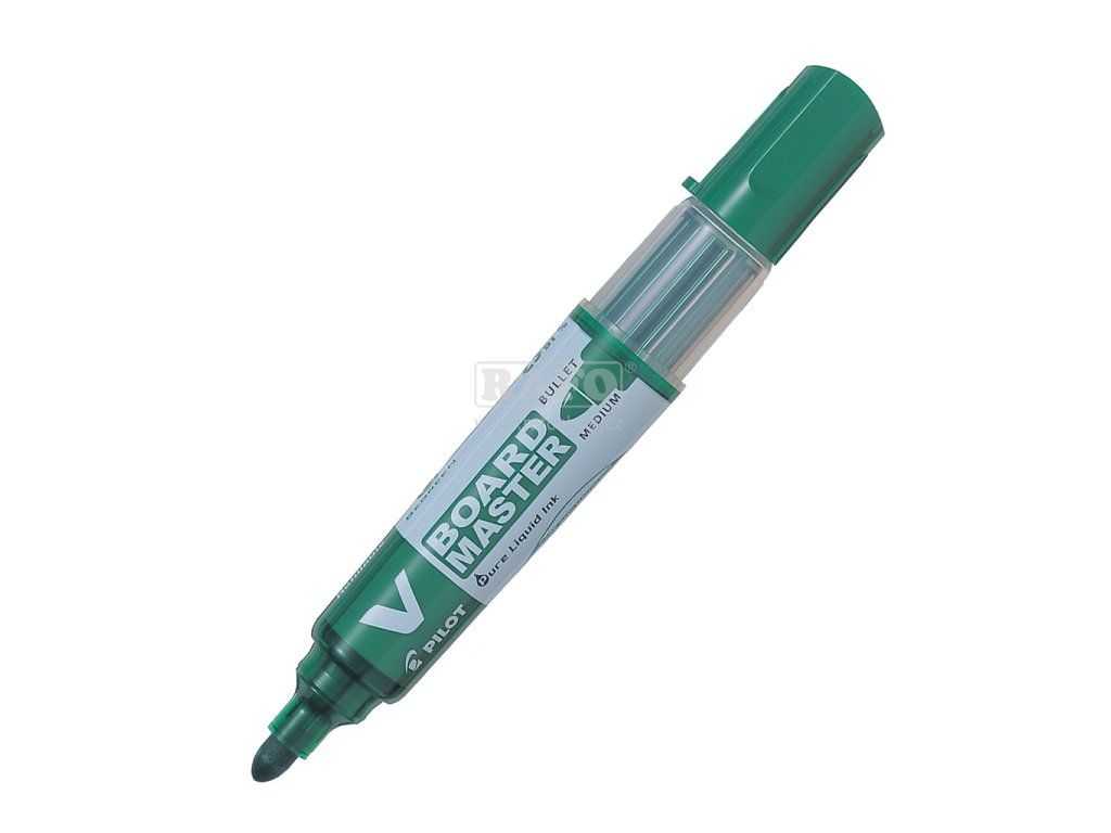 Popisovač na bílé tabule V-BOARD MASTER s výměnnou náplní. Moderní technologie zajišťuje intenzivní barvy viditelné i z velké vzdálenosti, stopa je při použití nepřerušovaná, žádné nežádoucí skvrny, viditelný stav náplně, snadné doplňování. Výrobek je součástí řady Pilot BeGreen - psacích potřeb, které jsou přátelské k životnímu prostředí.Doplňkové parametry