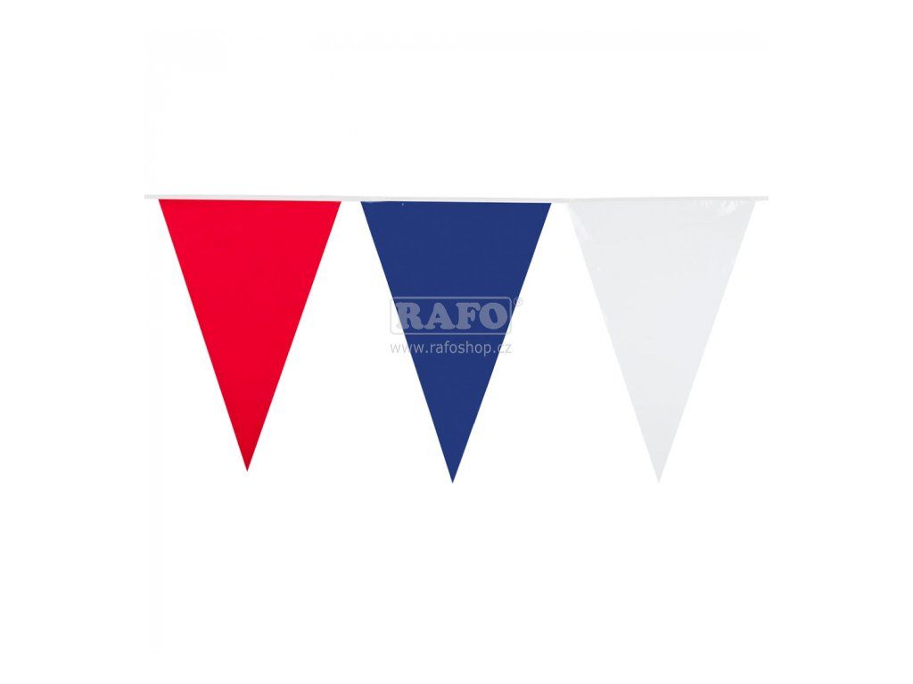 Girlanda plastová, velká. Pro výzdobu velkých vnitřních, nebo vnějších prostor je určena tato dlouhá a výrazná girlanda. • Délka: 10m • Rozměry: 20 praporků na girlandě 30x20 cm • Materiál: 100% PE • Barva: trikolóraDoplňkové parametry