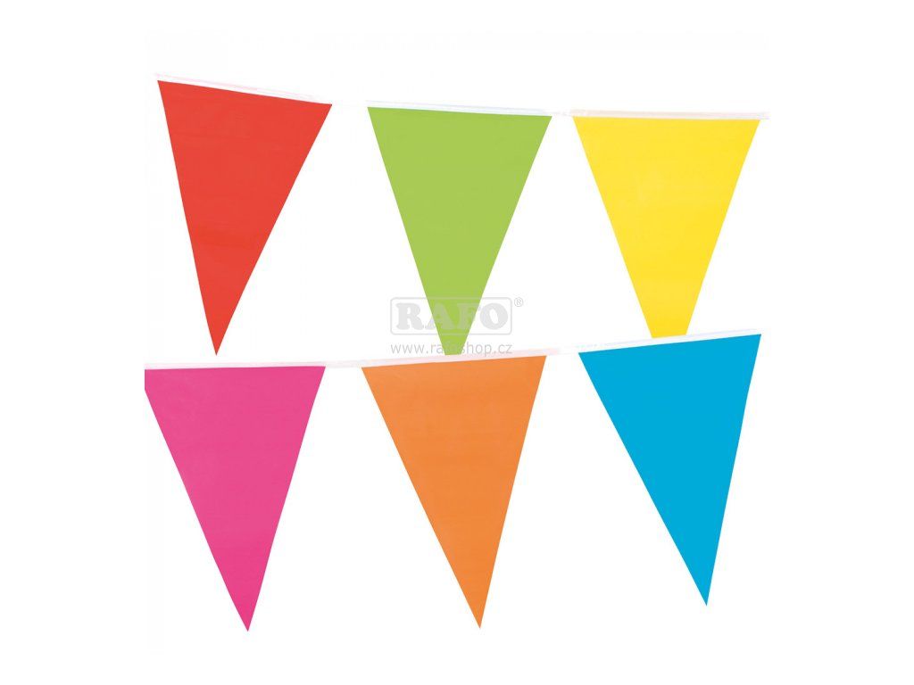 Girlanda plastová, XL. Pro výzdobu velkých vnitřních, nebo vnějších prostor je určena tato dlouhá a výrazná girlanda. • Délka: 10m • Rozměry: 18 praporků na girlandě 30 x 46 cm • Materiál: 100% PEDoplňkové parametry