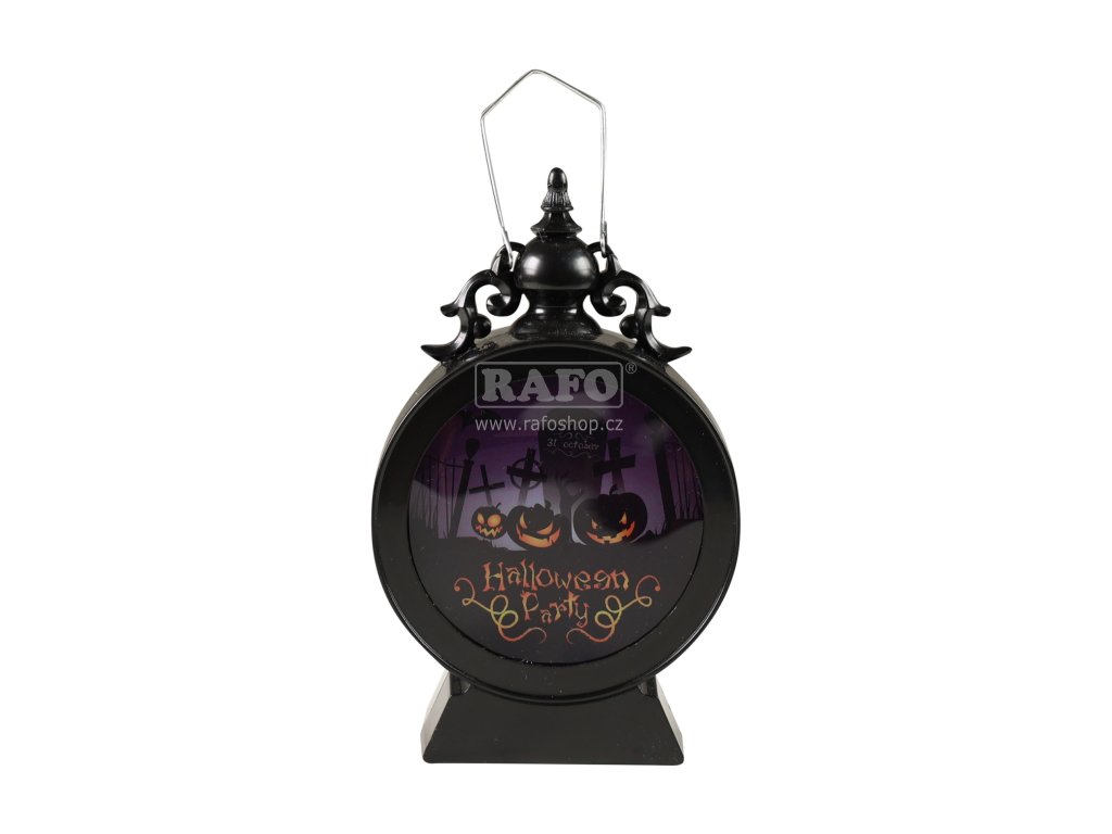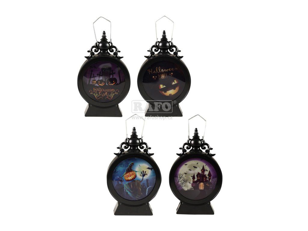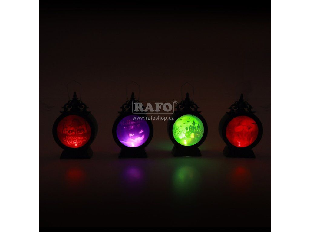 Halloweenské svítidlo na tu pravou Halloween párty! Plastová lampička/lucerna je funkční na 3 baterie typu LR1130 (baterie jsou součástí balení). Stačí jen přepnout přepínač ve spodní části. Lampička po zapnutí bliká různými barvami, které se samy přepínají. Velikost lampičky je cca 13 cm.Doplňkové parametry
