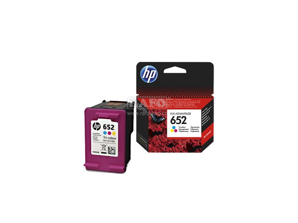 Originální inkoustová kazeta HP F6V24A (HP 652), tříbarevná, (Tri-Colour), 200 stran, 5ml. HP 652 Tříbarevná originální inkoustová kazeta Advantage (F6V24AE). Kompatibilita: HP DeskJet Ink Advantage 1115, HP DeskJet Ink Advantage 2135, HP DeskJet Ink Advantage 3635, HP OfficeJet Ink Advantage 3835, HP OfficeJet Ink Advantage 4535, HP OfficeJet Ink Advantage 4675.Doplňkové parametry
