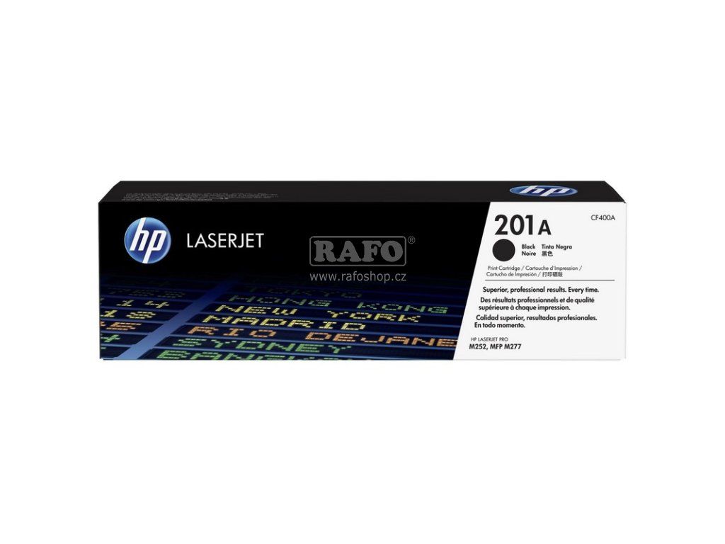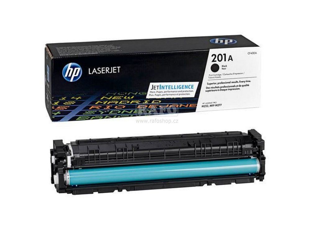 Originální HP 201A Černá tonerová kazeta (CF400A), Černá (Black), 1500 stran. HP 201A Černá originální tonerová kazeta LaserJet (CF400A). Toner do tiskárny HP 201A černý. Určeno pro tato zařízení: HP Color LaserJet Pro M252dw, HP Color LaserJet Pro M252n, HP Color LaserJet Pro M274n, HP Color LaserJet Pro M277dw, HP Color LaserJet Pro M277n. Spolehněte se na originální tonerové kazety HP LaserJet s tonerem JetIntelligence, se kterými budete tisknout kvalitní výtisky, vytisknete více stran při použití cenově výhodných volitelných kazet s vysokou výtěžností a které nabízejí perfektní výkon při vysokých rychlostech a mají inovativní technologii zamezující padělání. Můžete si být jisti, že z každé zakoupené kazety vytěžíte maximum. Originální tonerové kazety HP LaserJet s tonerem JetIntelligence a cenově výhodným provedením s vysokou výtěžností a vyšší efektivitou s přesným sledováním hladiny toneru. Vytvářejte ještě kvalitnější dokumenty, které očekáváte od výrobků HP. Toner ColorSphere 3 je speciálně navržen pro vysokou rychlost a výkon vaší tiskárny a díky nízkému bodu tání přináší kvalitu, která je k nerozeznání od profesionální práce. Exkluzivní technologie HP zamezující padělání, která je integrována do každé originální tonerové kazety HP LaserJet s tonerem JetIntelligence, vás ochrání před potenciálně padělanými kazetami tím, že kazetu ověřuje hned při instalaci. Získejte velmi kvalitní výtisky ze své tiskárny nebo multifunkční tiskárny. Originální tonerové kazety HP LaserJet s tonerem JetIntelligence přesně odpovídají vysoké rychlosti a výkonu vaší tiskárny a zvyšují efektivitu tisku.Doplňkové parametry