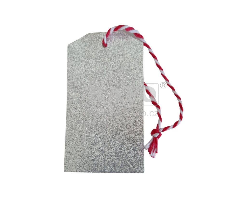 - Jmenovky na dárky, stříbrné třpytivé, na šňůrku,...
