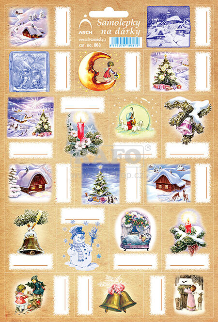 Samolepící jmenovky na dárky, rozměr etikety 53 x 34 mm, s krásnými vánočními obrázky.