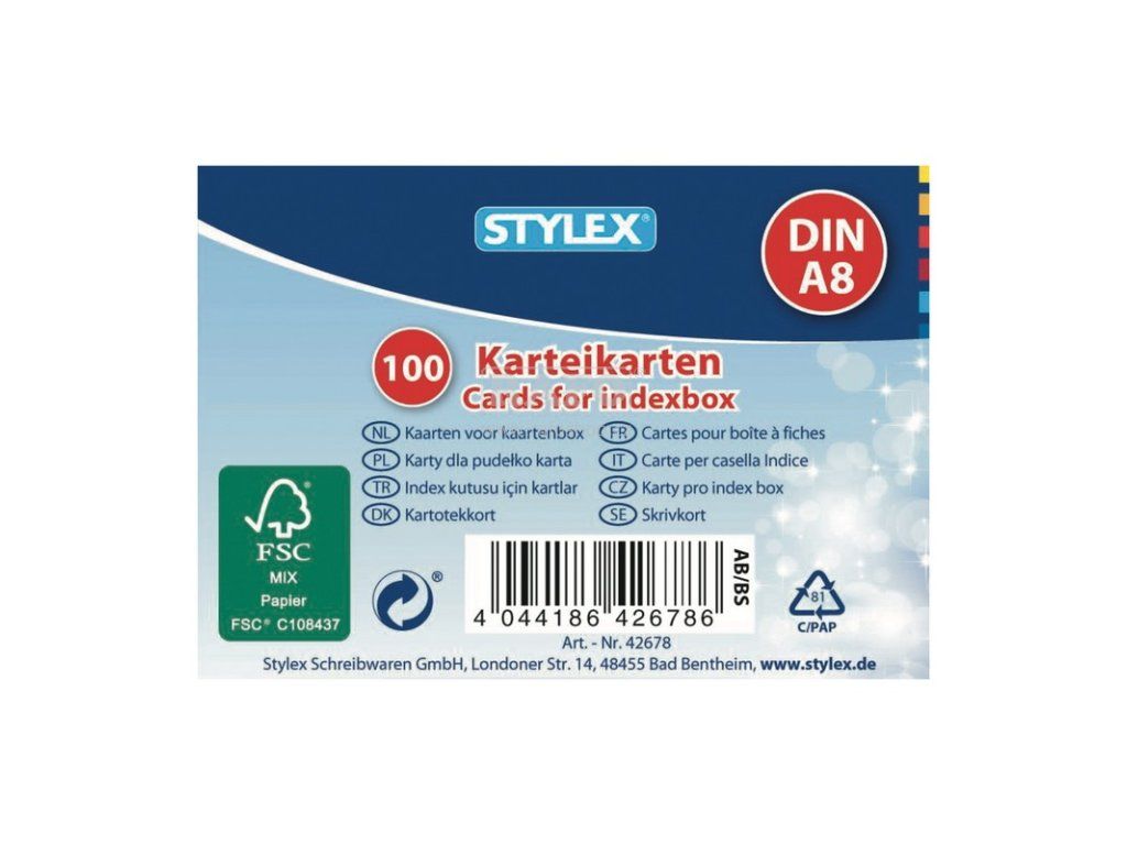 Kartotéční listy - formát A8 - linkované - bílé - 100 ks. Velikost: 52 x 74 mm.Doplňkové parametry