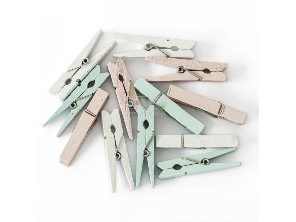 Kolíčky dřevěné 47 mm, pastel, 12 ks