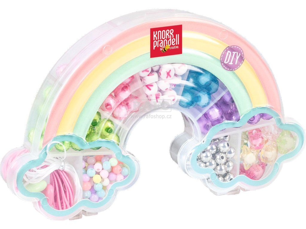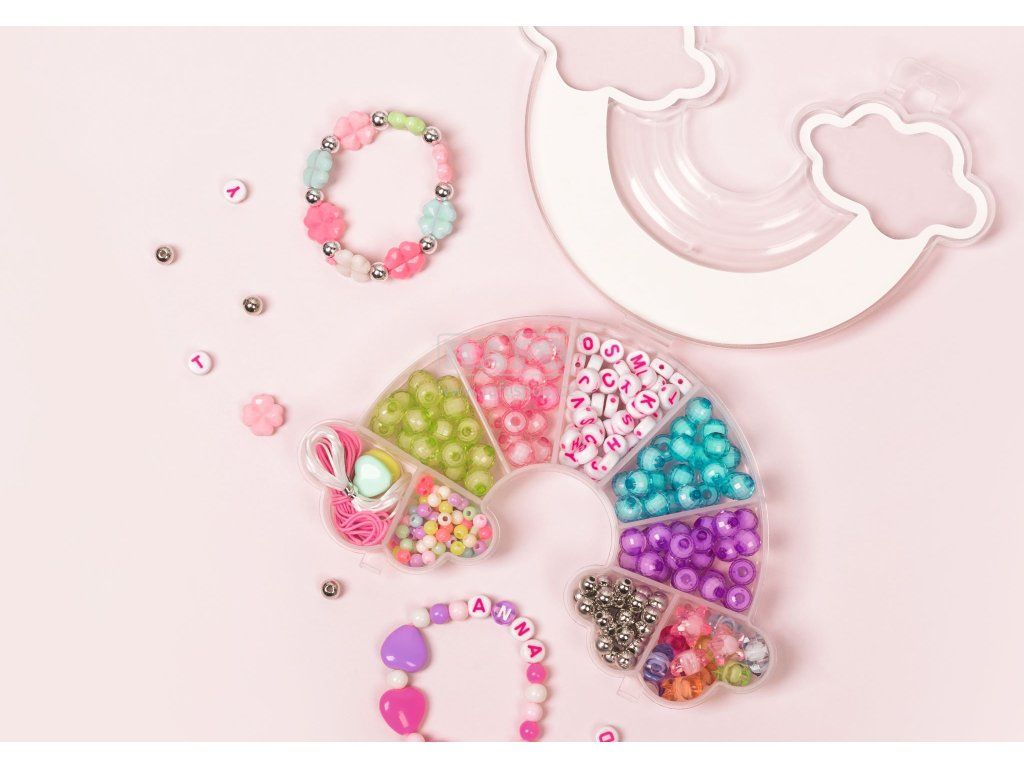 Set pro navrhování náhrdelníků a náramků. Balení obsahuje plastové korálky v různých barvách a provedeních, bílou a růžovou elastická nit a opakovaně uzavíratelnou krabičku. Perly barevně sladěné průhledné a neprůhledné. Vhodné pro děti od 4 let. Velikost balení 148×90×20 mm, 36 gramů.Doplňkové parametry