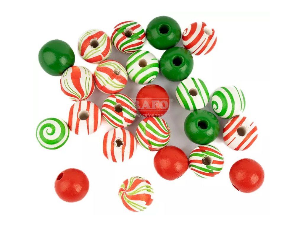 Korálky dřevěné Vánoce, 16 mm, 24 ks