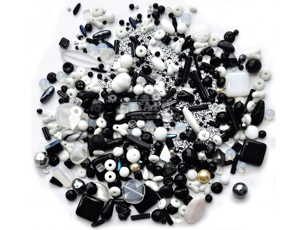 Korálky - směs, bílá a černá, 250 g