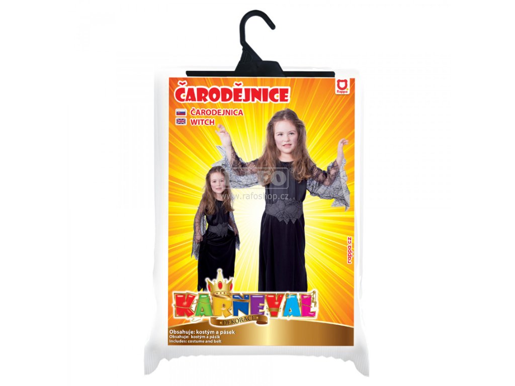 Kostým pro malé čarodějnice. Kostým černé barvy ve velikosti M je určen pro holčičky ve věkovém rozmezí 6-8 let (116-128 cm). Šaty jsou dekorovány průhlednými rukávy s motivem pavučin. S tímto úchvatným kostýmem budeš vypadat jako pravá čarodějka. Skvěle se hodí i na oslavu Halloweenu.Doplňkové parametry