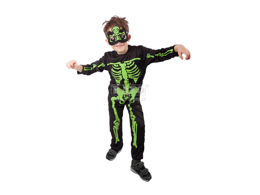 Strašidelný karnevalový kostým ideální na haloween s motivem kostlivce! Kostým ve velikosti S je určen pro chlapečky ve věkovém rozmezí cca 4-6 let. Balení obsahuje černou kombinézu a masku s motivem zeleného kostlivce.Doplňkové parametry