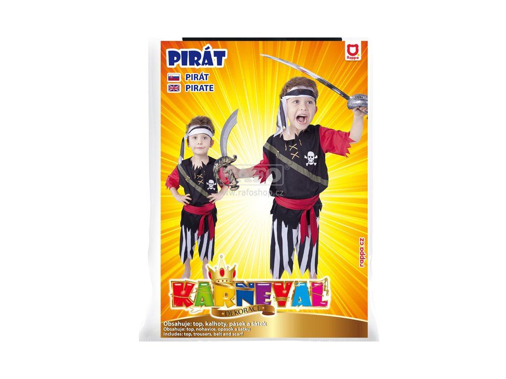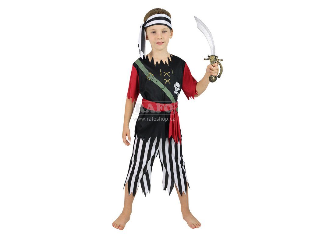 Karnevalový kostým pro opravdického piráta! Kostým ve velikosti M je určen pro chlapce ve věkovém rozmezí 6-8 let. Pozor, balení obsahuje šátek, horní díl, kalhoty a pásek!Doplňkové parametry