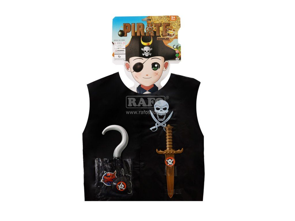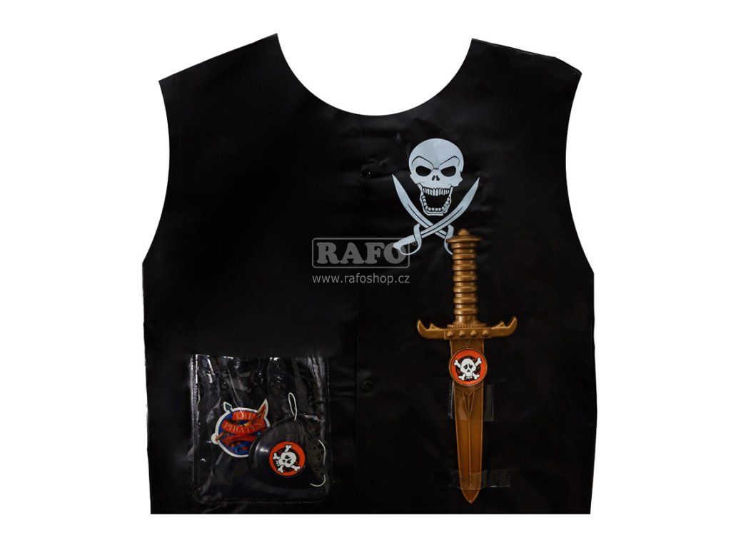 Parádní karnevalový kostým s motivem piráta je určen pro děti ve věkovém rozmezí cca 3-8 let. Balení obsahuje pirátskou vestu, pásku přes oko, plastovou dýku a hák.Doplňkové parametry