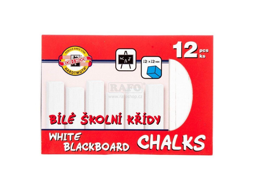 Školní křída bílá, čtyřhranná o rozměrech 12 x 12 x 100 mm. 12 ks v papírové krabičce.Doplňkové parametry