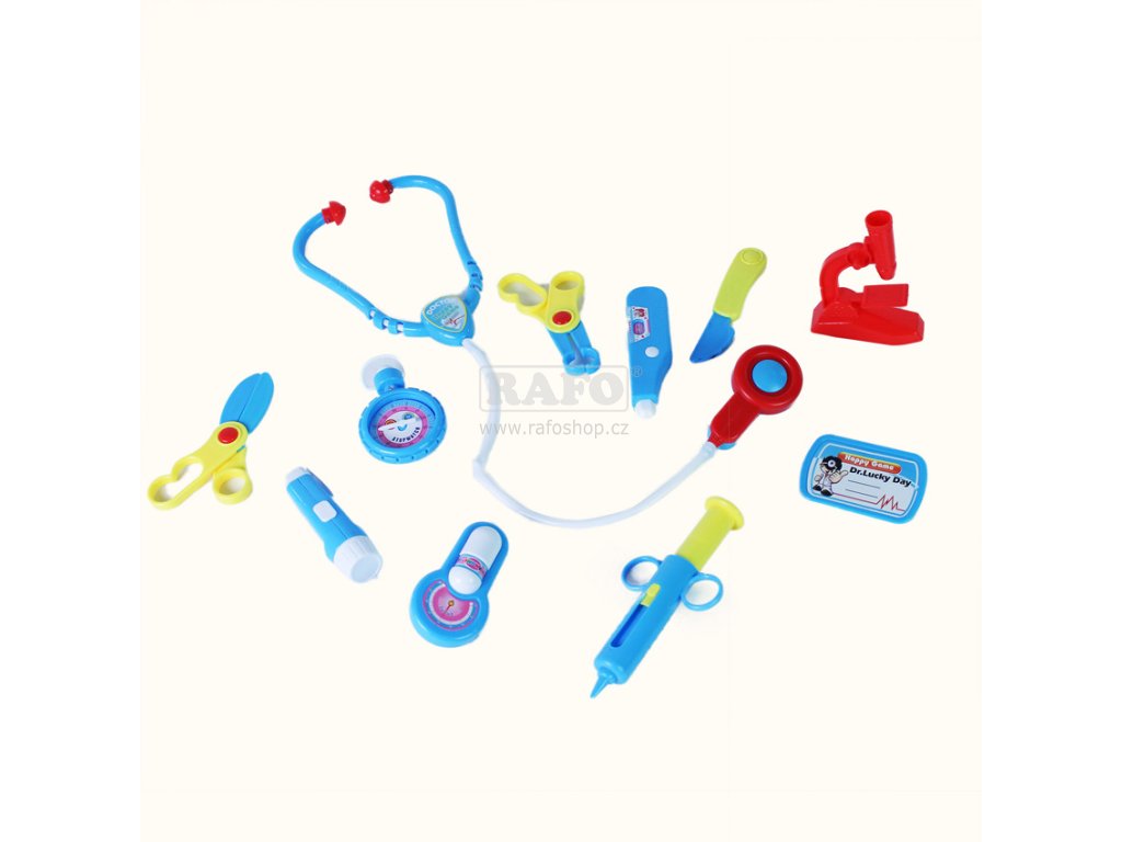 Doktorský kufřík pro malé doktory. Najdete v něm vše, co každý doktor k vyšetření pacienta potřebuje. Od stetoskopu, který funguje na baterie, až po injekční stříkačku. Rozměr balení 275 x 240 x 55 mm.Doplňkové parametry