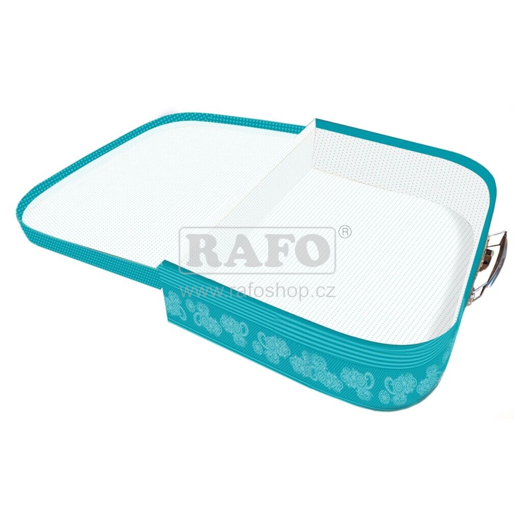 Dětský kufřík je vhodný pro uložení výtvarných potřeb ve škole, nebo i dalších pomůcek či hraček doma. Kufříky jsou velmi lehké, vyrobené z kvalitní lepenky a díky povrchové úpravě lze případnou nečistotu odstranit vlhkým hadříkem. Vnější strana je pokryta potištěným papírem s dětskými motivy sladěnými se školními aktovkami a batohy. Rozměr: 35 x 22,5 x 10 cm