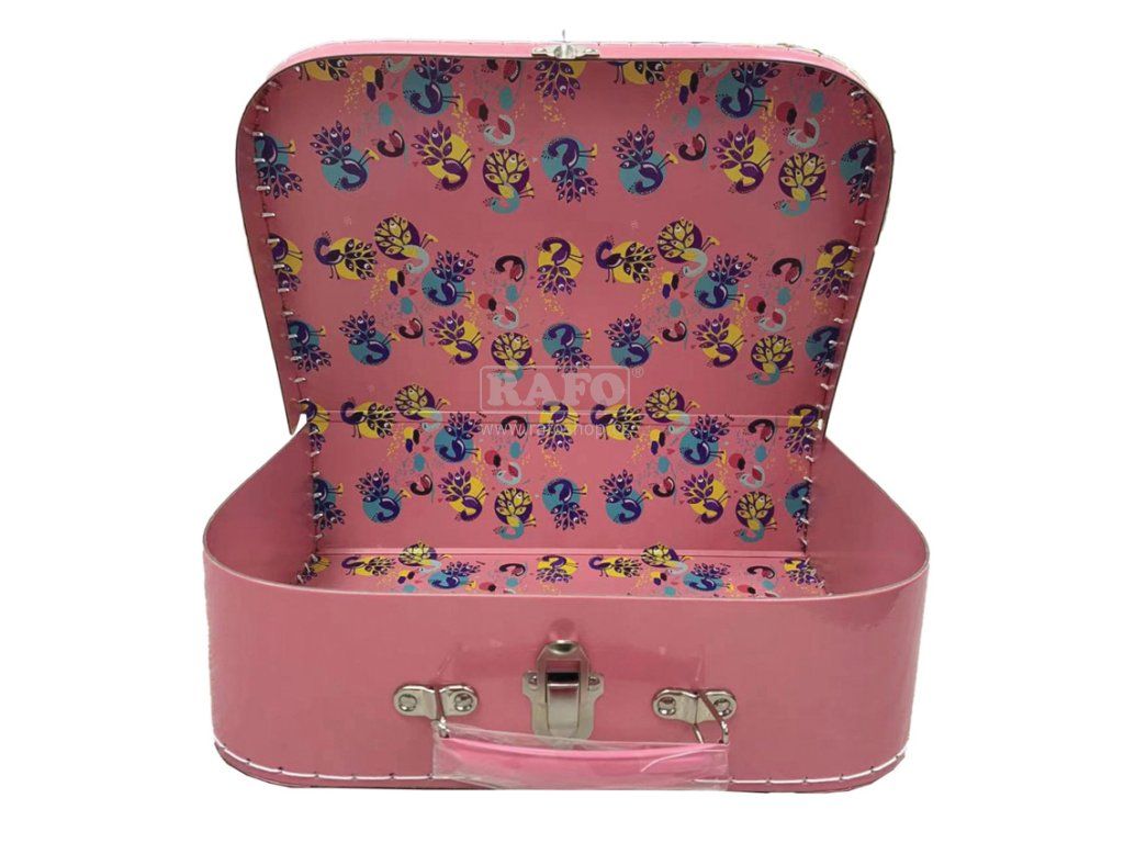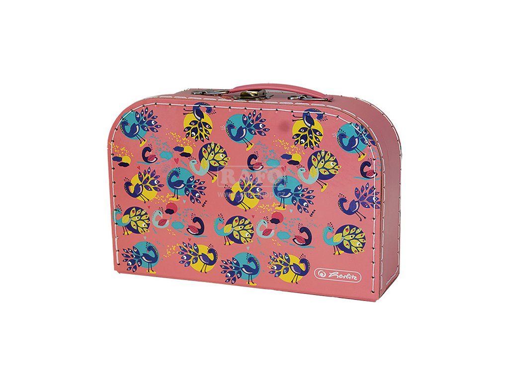 Dětský kufřík s motivem barevných pávů, velikost: 21 x 29 x 9,5 cm, karton 340 g/m2Doplňkové parametry