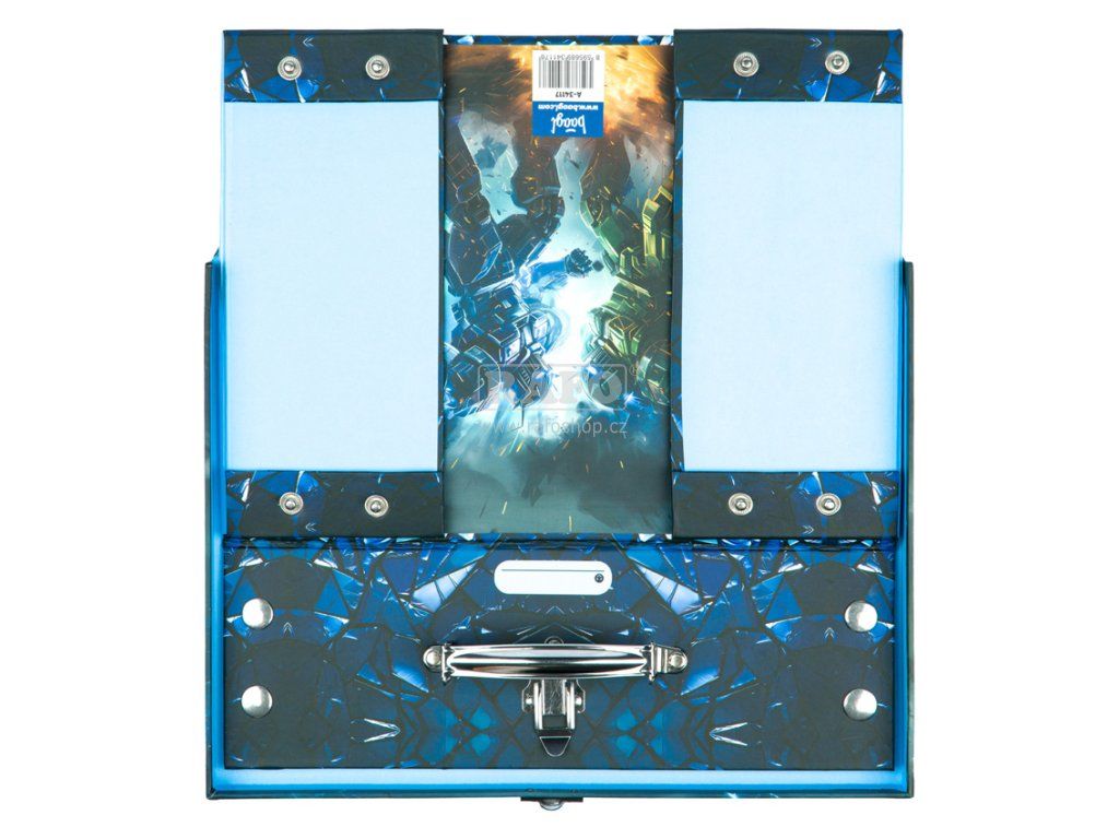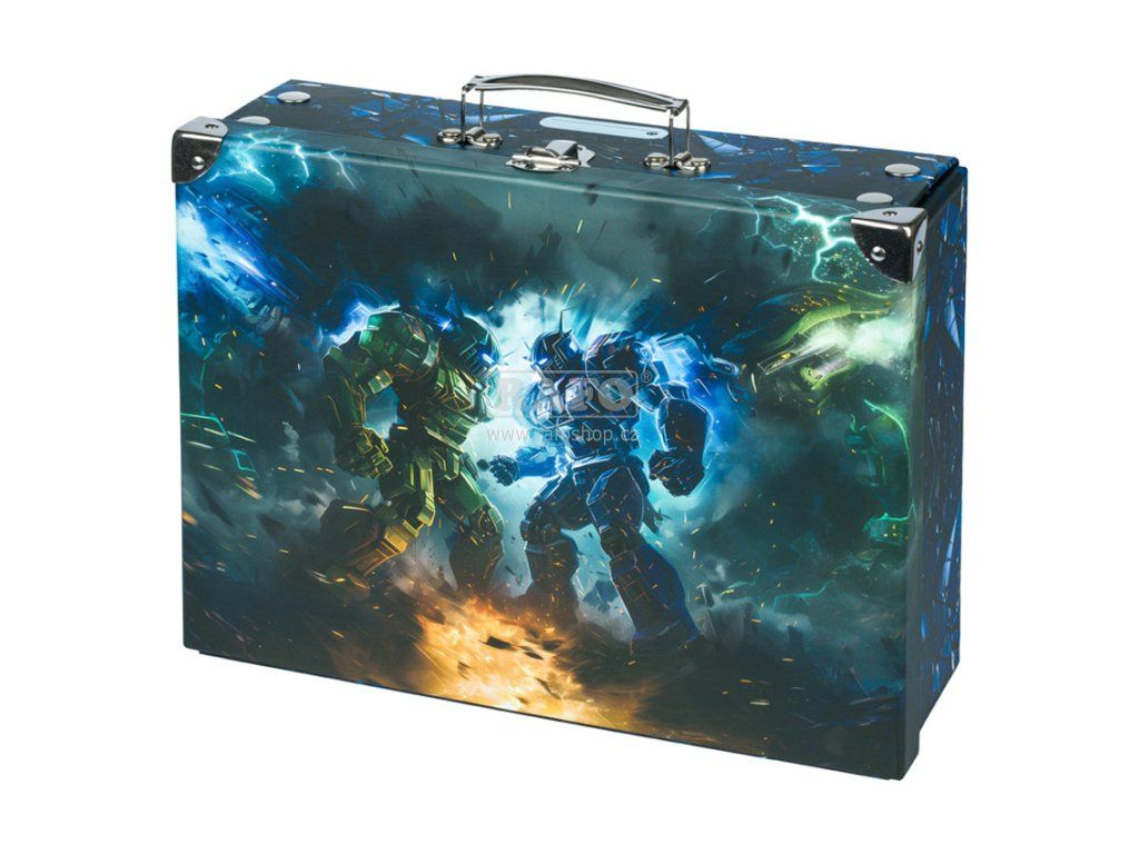 Skládací školní kufřík Roboti s kováním • Skládací kufřík z pevného laminovaného papíru s okovanými rohy. • Unikátní provedení s patentky, díky nimž se dají vždy znovu složit a rozložit. • Opatřené kovovým uchem a uzavíratelné na klasickou přezku. • Rozměry: 32,5 x 26 x 10,5 cmDoplňkové parametry
