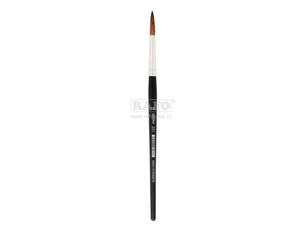 Kvalitní vlasový štětec kulatý velikosti 16. Vhodný pro práci s vodovými barvami. Dřevěná černá lakovaná násadka. Délka štětců tohoto typu 17 - 20 cm.Vlas pony, chromovaná mosazná zděř, krátká oranžově lakovaná násadka štětec vhodný ke školnímu použití při akvarelových technikách a na temperovou malbuDoplňkové parametry