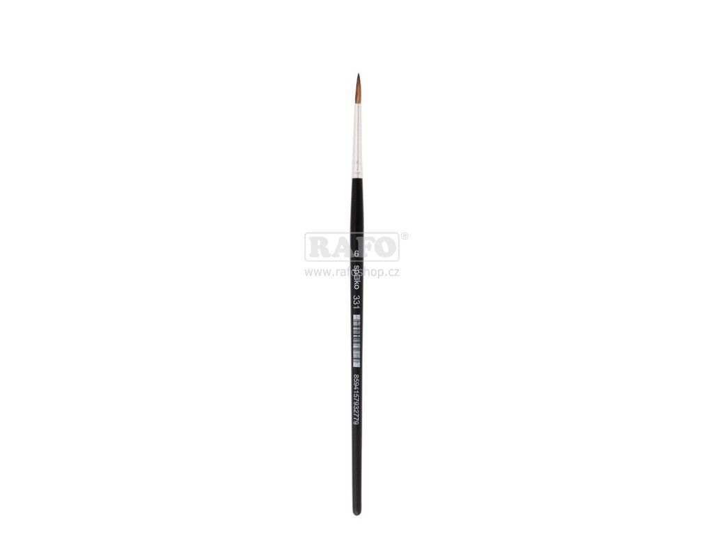 Kvalitní vlasový štětec kulatý velikosti 6. Vhodný pro práci s vodovými barvami. Dřevěná černá lakovaná násadka. Délka štětců tohoto typu 17 - 20 cm. Vlas pony, chromovaná mosazná zděř, krátká oranžově lakovaná násadka štětec vhodný ke školnímu použití při akvarelových technikách a na temperovou malbuDoplňkové parametry