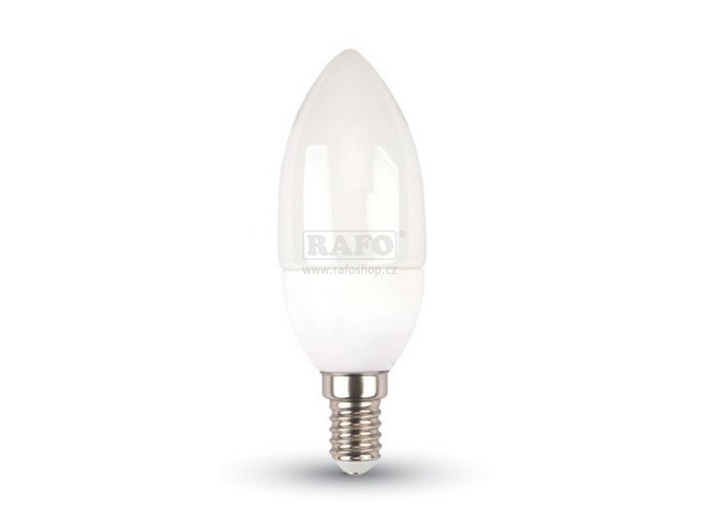 Vysoce úsporná LED žárovka svíčka za skvělou cenu. Jedná se o typ LED žárovky 230V - tedy do normálních svítidel. Tyto SMD LED žárovky E14 o výkonu pouze 3W svítí přibližně jako běžná žárovka o výkonu 25W - světelný tok dělá 250 lumenů. Tato led svítivka emituje světlo v barvě denní bílá. Tato barva světla o chromatičnosti 4000K se blíží barvě obvyklého denního světla a je proto pro většinu lidí nejlepší na oči. Tato led žárovka má pokročilý typ diod - SMD. Tyto LED žárovky SMD mají díky nové technologii chipu vyšší svítivost při nižší spotřebě oproti starým LED diodám. Použitím naší LED žárovky ušetříte okolo 88% energie! Tato LED žárovka E14 patří díky poměru cena/výkon mezi nejlevnější LED žárovky na trhu. Materiál použitý pro uložení procesoru led žárovky je speciální teploodvádějící plast. Tento materiál umožňuje, na rozdíl od skla nebo obyčejného plastu, efektivní chlazení. Díky tomu je led žárovky odolná, dobře chlazená a vydrží i větší zátěž, proto je vhodná i do prostor s častým a intenzivním svícením. Tato led žárovka má přes led diody praktický mléčný plastový kryt, který lépe rozprostře světlo emitované jednotlivými diodami a ubere na ostrosti světla při pohledu přímo do žárovky. Žárovku lze díky tomuto krytu použít jako pohledovou, tedy i do svítidel bez krytu či stínidla Třída energetické účinnosti A na stupnici A (vyšší účinnost) až G (nižší účinnost). Světelný tok zdroje světla 250 lumenů. Příkon 3W. Jmenovitá střední doba životnosti zdroje světla 20000 hodin.Doplňkové parametry