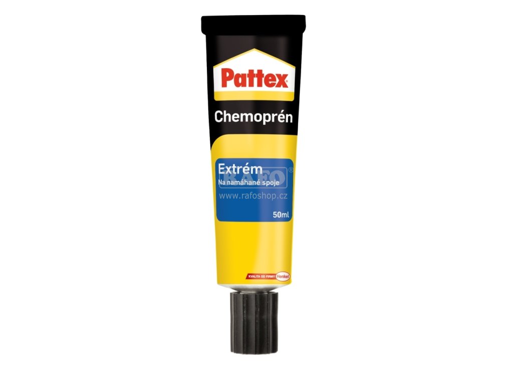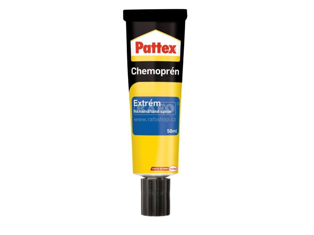 Speciální kontaktní lepidlo bez obsahu zdraví škodlivého cyklohexanu a toluenu. Určeno pro extrémně namáhané spoje. Odolává vodě, tlaku i teplotám až do +120 °C. Univerzálně využitelné – lepí širokou škálu materiálů: kůži, dřevo, gumu, textilie, kovy, překližku,karton, různé, materiály z tvrdých umělých hmot apod. Nedoporučuje se na lepení polystyrenu, teflonu, měkčeného PVC, PE a PP. Lepidlo se nanáší na obě plochy a nechá se odvětrat cca 15 minut. Poté je nutno k sobě díly přiložit a krátce co největší silou stisknout (zalisovat). Na lepení savý - savý materiál použijte naředěné lepidlo jako penetrační nátěr. Doporučujeme ředit Pattex Chemoprén Ředidlem. Následně aplikujte neředěné lepidlo na lepené plochy. Báze: polychlorbutadien. Barva: matně žlutá. Hustota: 0,89 g/cm3. Aplikační teplota: od +18 °C do +25 °C. Doba odvětrání: 10 – 15 minut při pokojové teplotě. Otevřená doba: max. do 2 hodin po odvětrání je nutno spoje zalisovat. Teplotní odolnost: od -40 °C do +120 °CSpotřeba: 250 – 350 g/m2 (při oboustranném nánosu). Teplota skladování: od +10 °C do +50 °C. Balení: tuba 50 ml.Doplňkové parametry