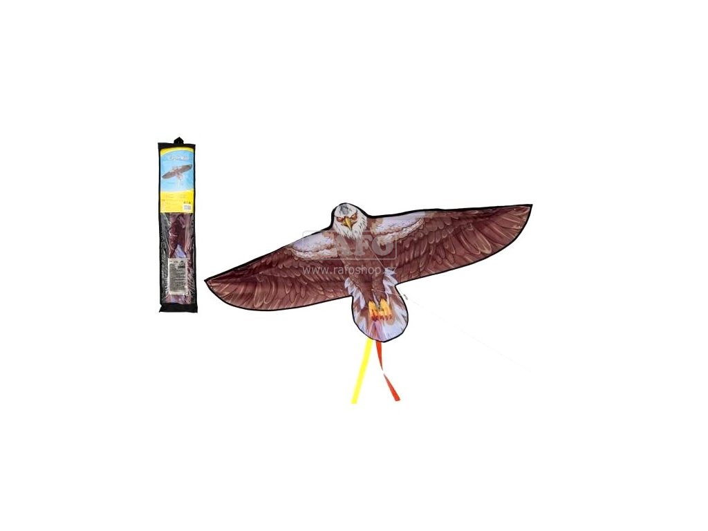 Dětský létající drak ve tvaru orla. Šňůrka dlouhá 30 m s držátkem součástí balení. Materiál nylon. Pro podzimní radovánky.Doplňkové parametry