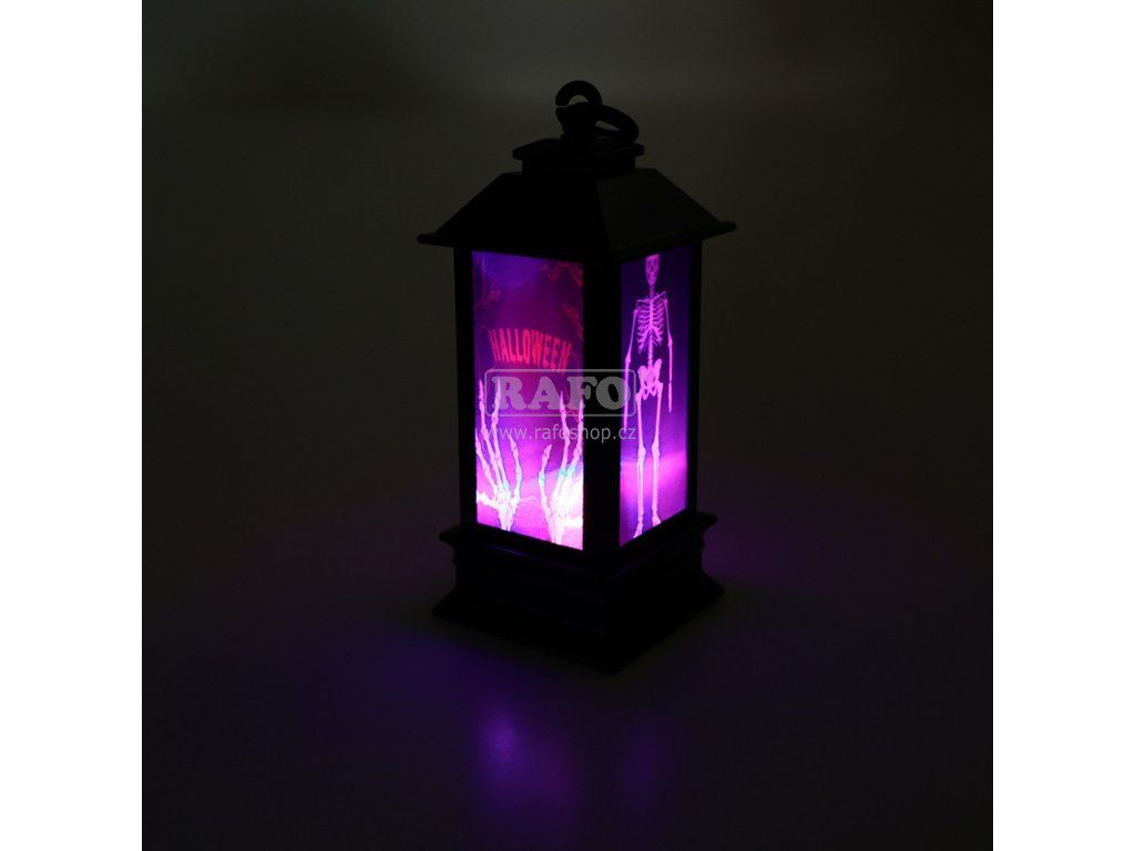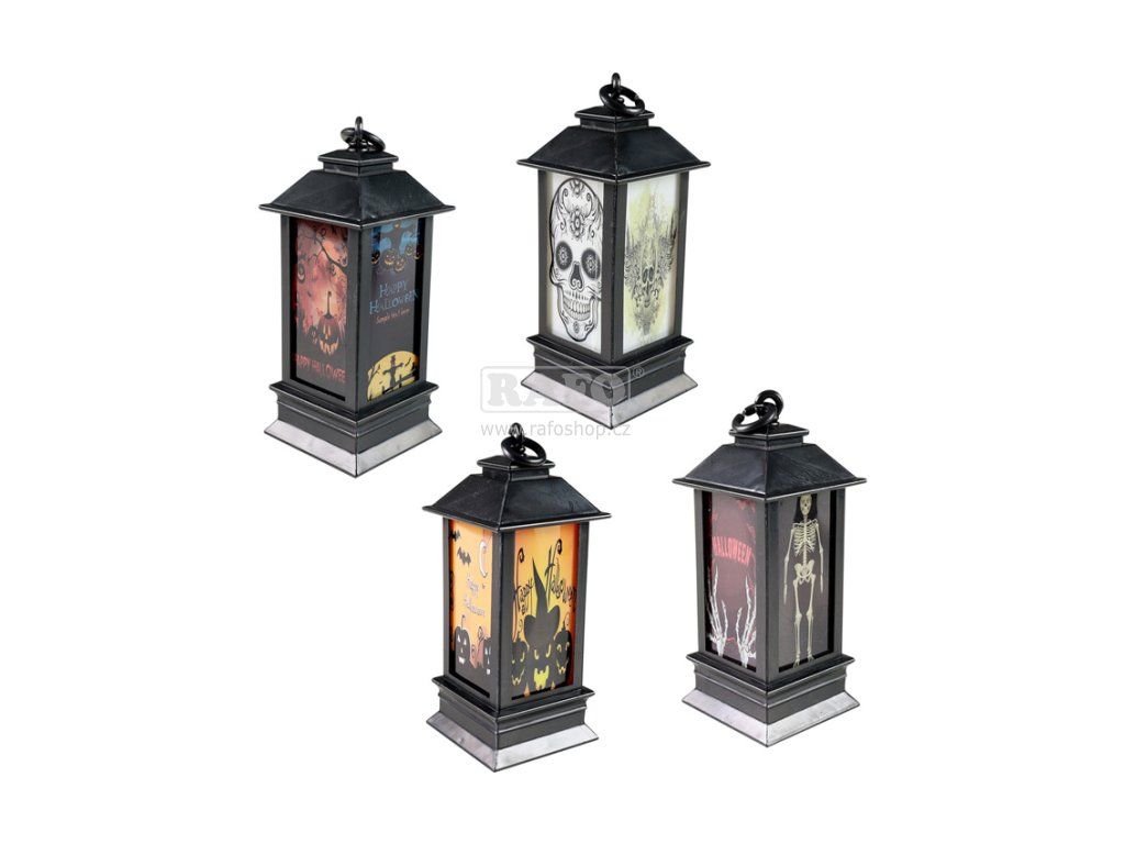 Halloweenské svítidlo na tu pravou Halloween párty! Plastová lampička/lucerna je funkční na 3 baterie typu LR1130 (baterie jsou součástí balení). Stačí jen přepnout přepínač ve spodní části. Lampička po zapnutí bliká různými barvami, které se samy přepínají. Velikost lampičky je cca 13 cm. Mix druhů, dodáváno dle skladové dostupnosti.Doplňkové parametry