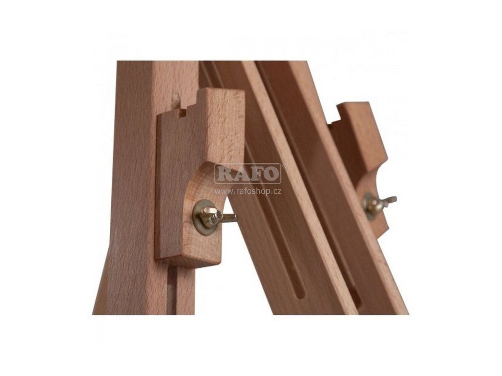 Malířský stojan Dali je vyroben z bukového masívu a je ošetřen ekologickým olejem. Stojan je velmi skladný, lehký, což je jeho velkou výhodou. Jako další výhodu bychom zdůraznili jeho jednoduchou montáž. Uvolněním hlavního šroubu a vysunutím nožek se může stojan sestavit do požadované výšky. Skicovací blok nebo plátno lze vsunout mezi horní fixovací profil a jezdec nebo mezi jezdec a podpěry na nohách stojanu. Využívá se především pro malování v přírodě a stále častěji také jako reklamní podstavec. Tip na dárek pro začínající i pokročilé malíře.Doplňkové parametry