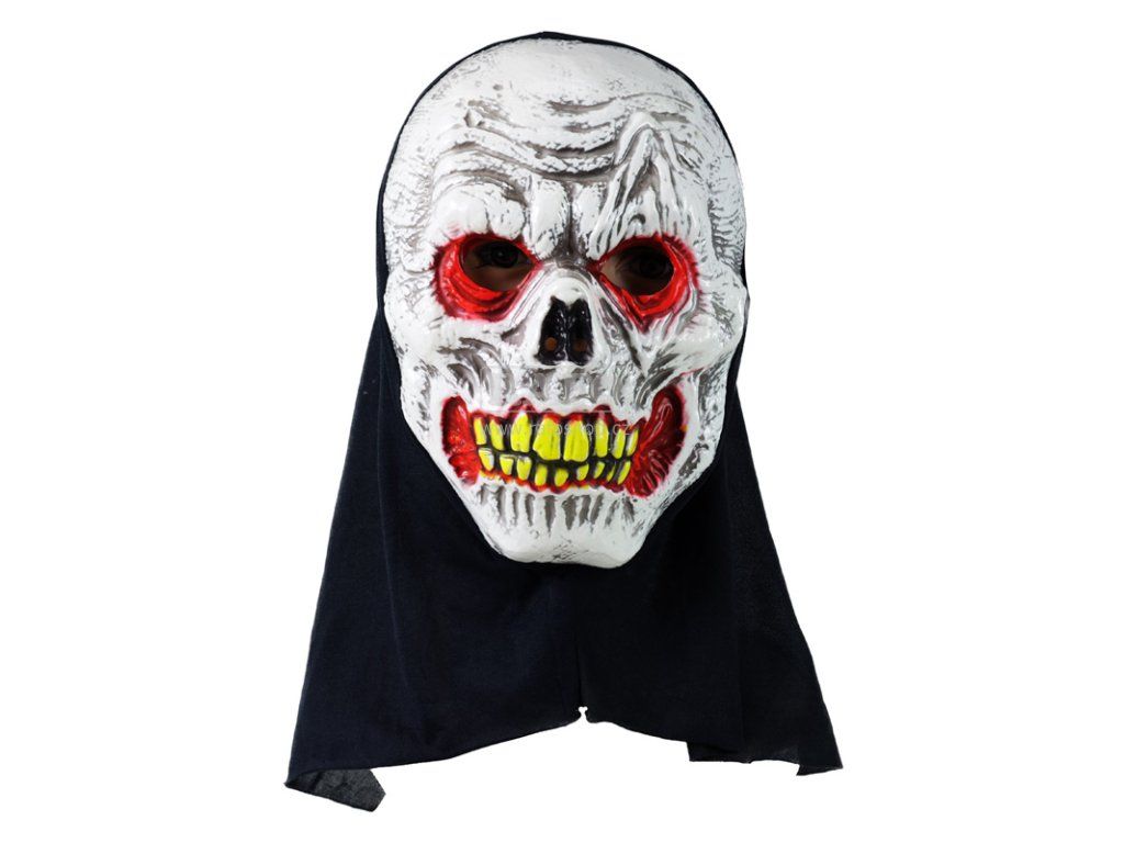 Děsivá maska na obličej s motivem kostlivce je parádním doplňkem na karnevalový večírek nebo Halloween párty. Plastová maska je doplněna textilním šátkem přes hlavu.Doplňkové parametry