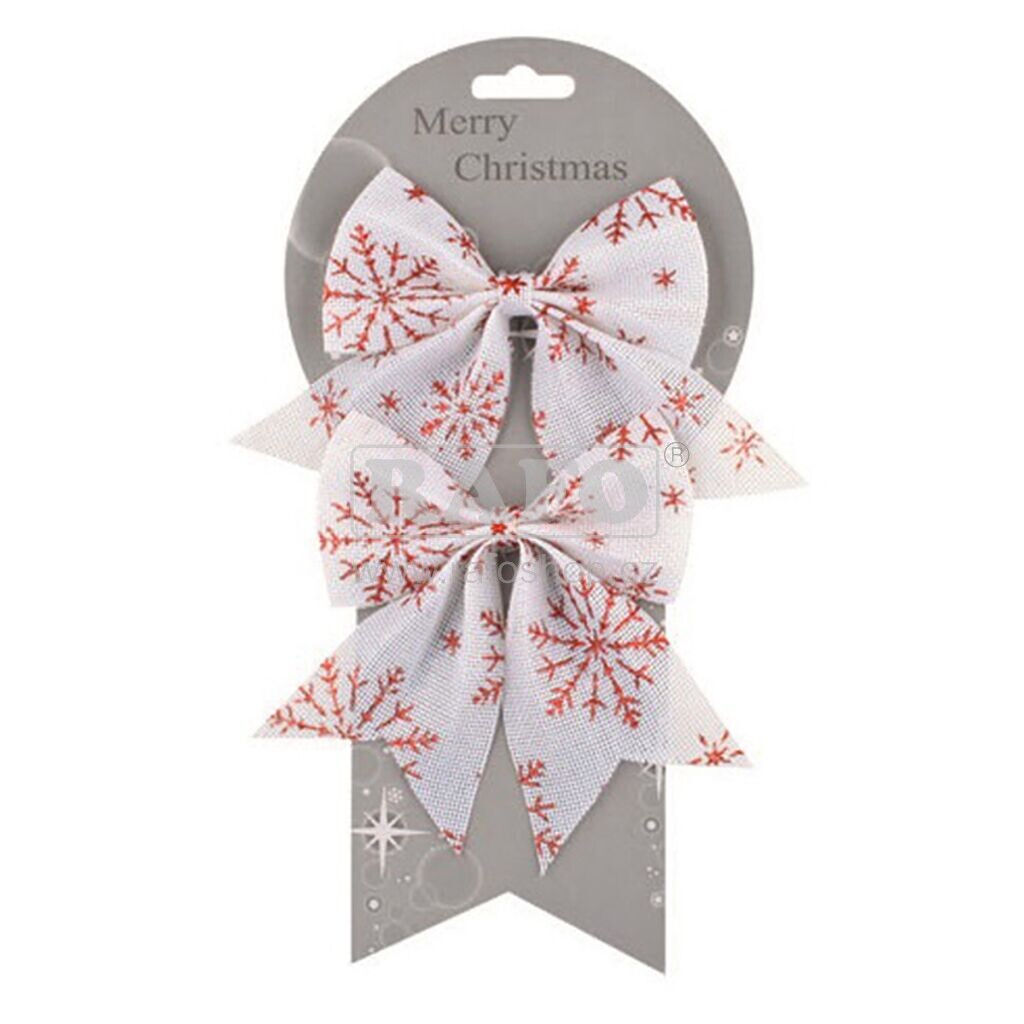 Mašle justová bílá s červenými vločkami, 14 cm, 2 ks