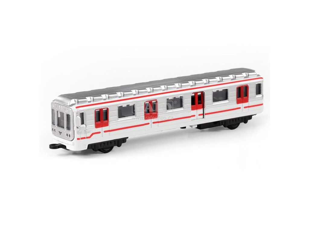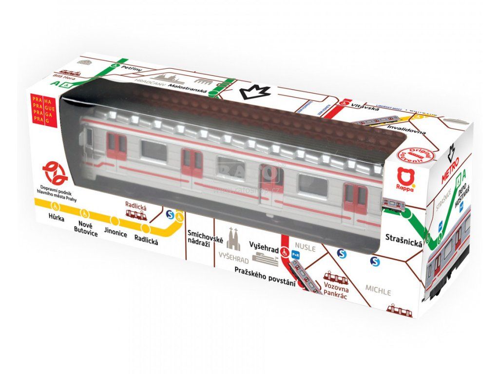 Originální hračka vytvořená ve spolupráci s hlavním městem Praha a Dopravním podnikem hlavního města Prahy. Délka metra je 16 cm. Tento jedinečný kousek se určitě stane oblíbenou hračkou všech malých nadšenců městské hromadné dopravy nejen v Praze. Navíc lze jednotlivé soupravy jednoduše zapojit za sebou. Jedny dveře metra je možné otevřít, pomocí páčky ve spodní části vozu. Jezdí na zpětný chod. Metro má rozchod kol cca 1,5 cm.Doplňkové parametry