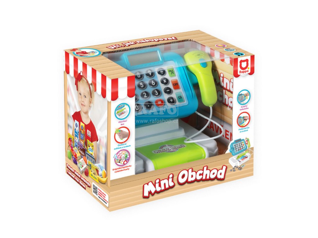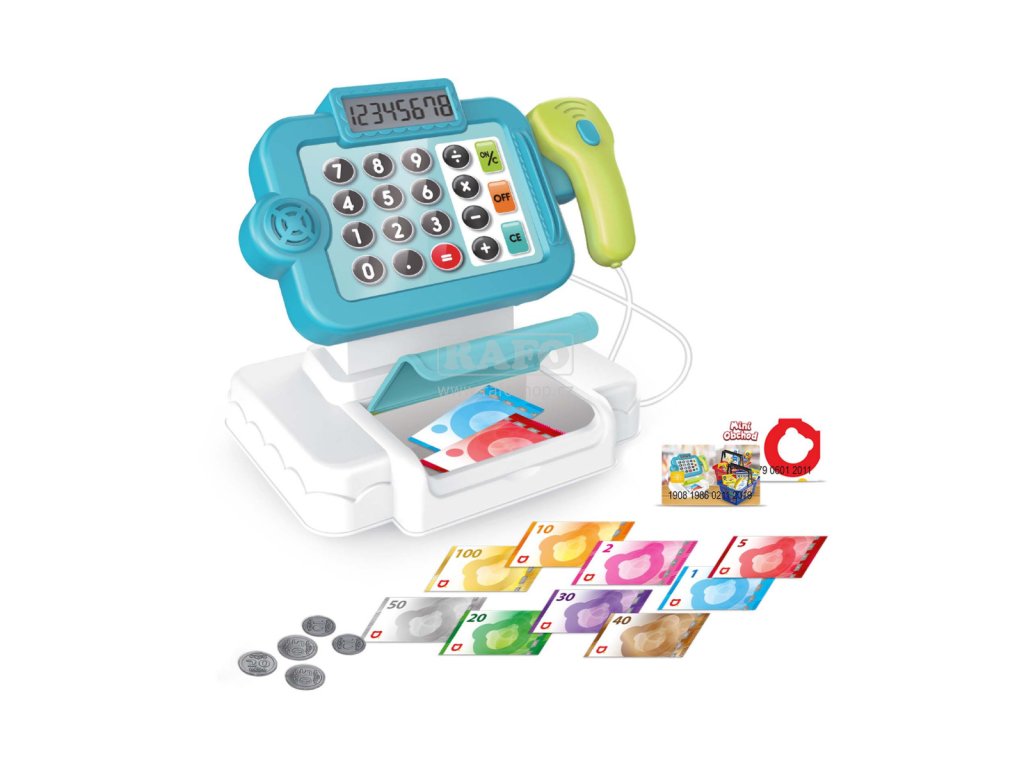 Mini obchod - pokladna s čtečkou a penízky, modrá