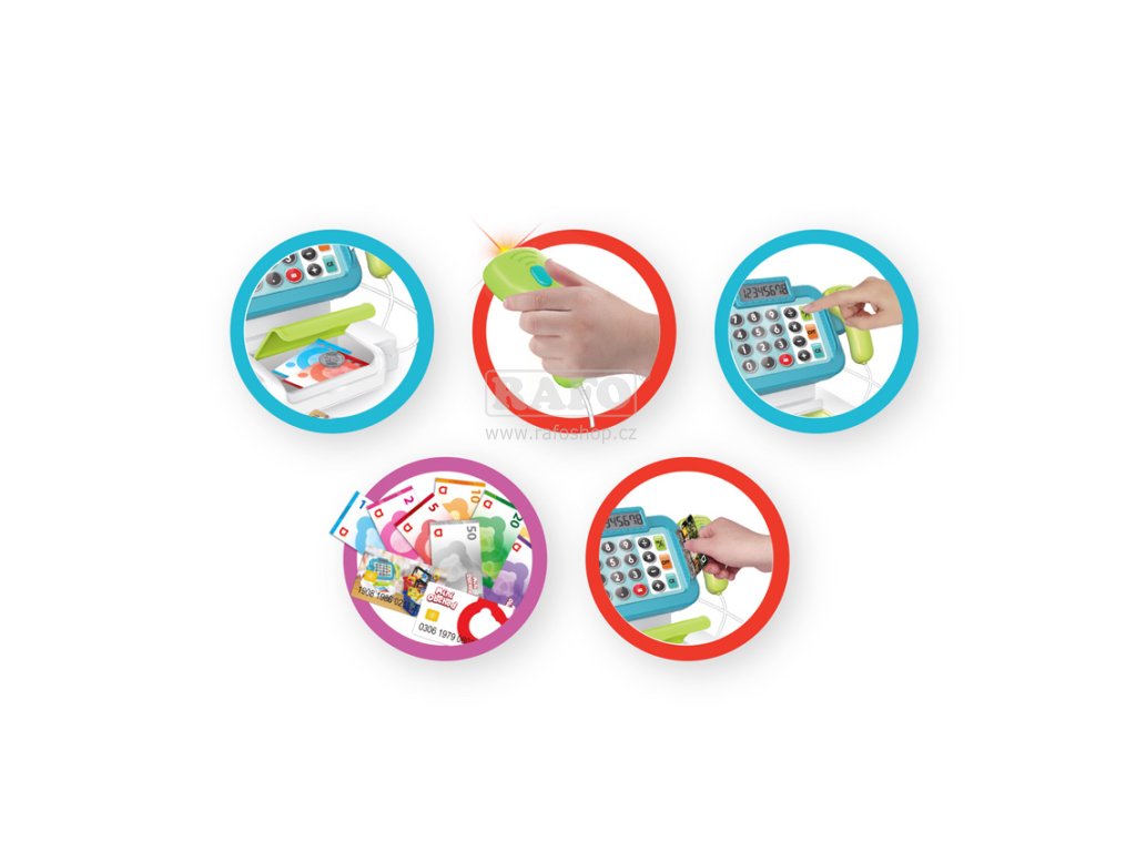 Hra na obchod patří k oblíbeným dětským kratochvílím, a tak výběrem tohoto doplňku jistě nesáhnete vedle! Pořiďte svému malému prodavači či prodavačce vlastní elektronickou pokladnu. Dětská pokladna pomůže dětem s počítáním i lehkou motorikou. Přináší spoustu zábavy a zároveň podporuje rozvoj dětské představivosti. S naší digitální pokladnou si vaše děti užijí spoustu legrace. Budou si moci otevřít vlastní obchod a na pokladně věci prodávat. Pokladna obsahuje čtečku se světlem a zvukem, makety bankovek a mincí, slot pro kreditní kartu a hlavně funkční kalkulačku. Pokladna funguje na 2 ks baterií typu AA, které nejsou součástí balení. Hračka je vhodná pro děti od 3 let. Tip na dárek!Doplňkové parametry