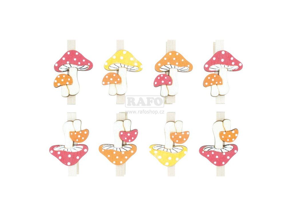 Mochomůrky dřevěné na kolíčku, 8 ks