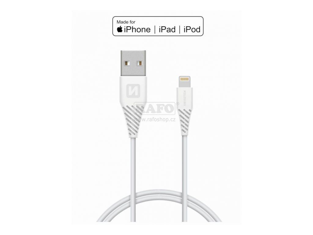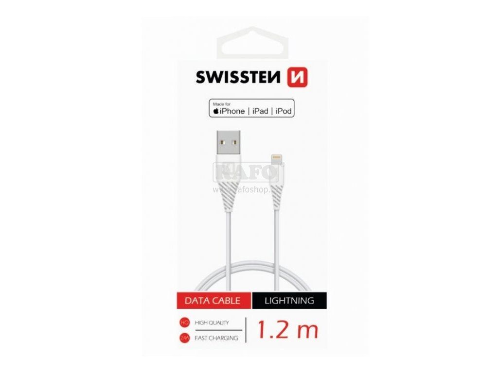 Nabíjecí a datový kabel Swissten Lightning, délka 1,2 m, bílý