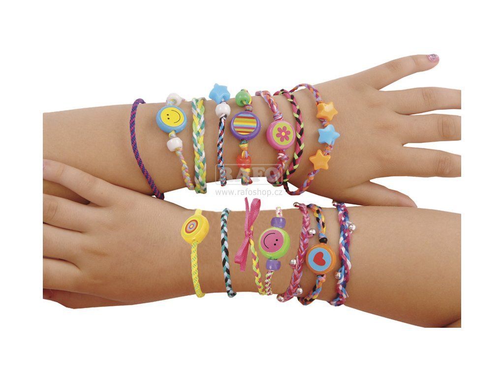 Vytvoř si s kamarády náramky přátelství. Náramky vytvoříš pomocí různých korálku, které můžeš idokonce polepit samolepkami, náramek můžeš uplést pomocí bavlnek nebo hedvábné stužky. Můžeš tvořit různé copánky a zaplétat do nich nádherné korálky. Náramek pak můžeš věnovat nejlepší kamarádce nebo kamarádovi a nebo si je můžete vyrobit navzájem. Je to super zábava. Obsah: 60 m bavlněné nitě v různých barvách, saténová stuha, různé korálky, samolepky na korálky, pletací kolo UPOZORNĚNÍ nebezpečí udušení. Nevhodné pro děti mladší 36 měsíců. Obsahuje malé části, které by mohly být spolknuty nebo vdechnuty. Obal není hračka, před použitím hračky ho odstraňte z dosahu dítěte, může způsobit zadušení.Doplňkové parametry