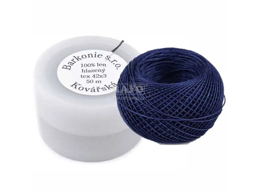 Niť režná (knoflíková), 100% len, 50 m, tmavě modrá