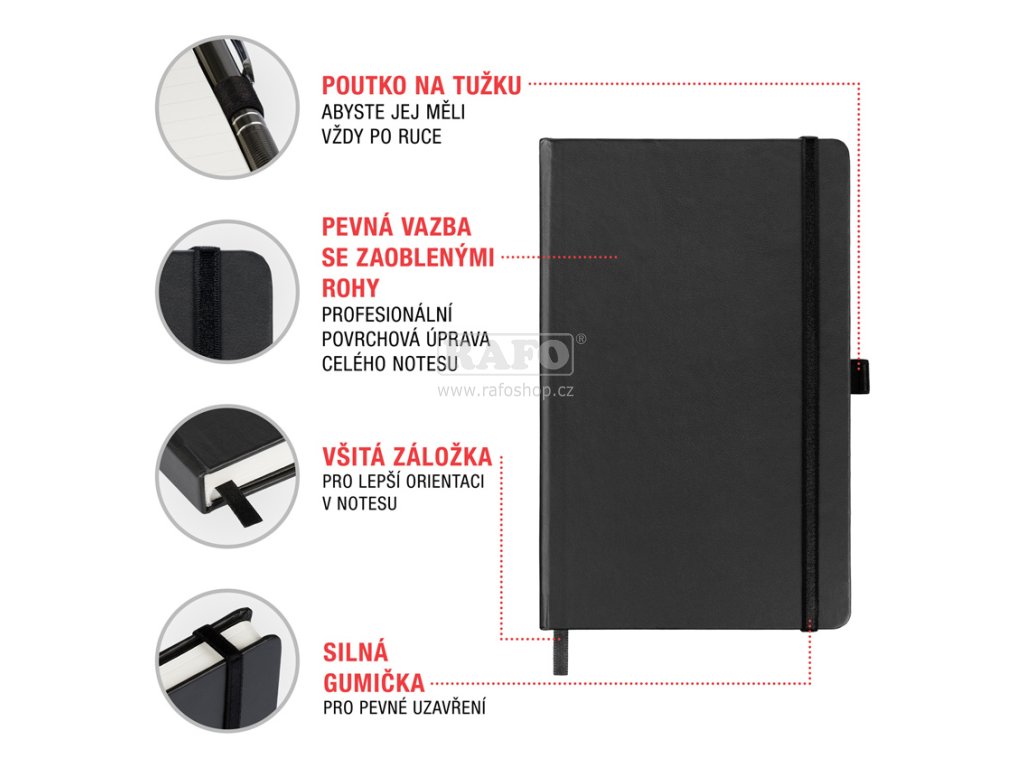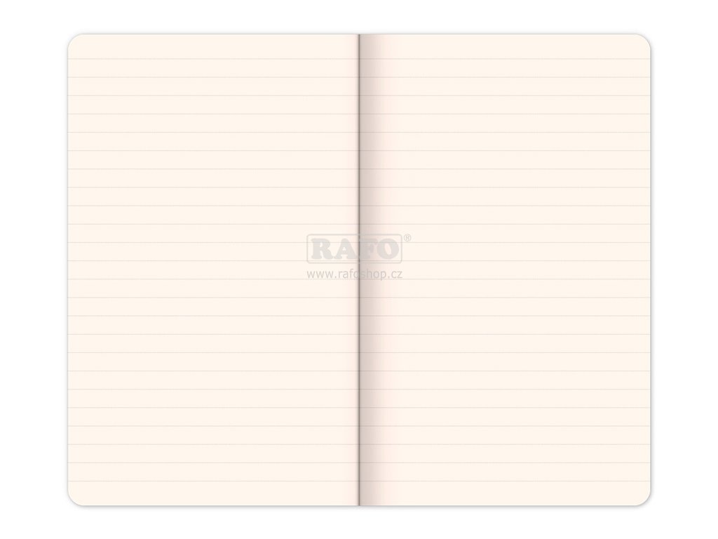 Linkovaný notes v pevných deskách s uzavíráním na gumičku, kapsou na drobnosti a poutkem na tužku. 172 stran na žlutém papíře.Doplňkové parametry