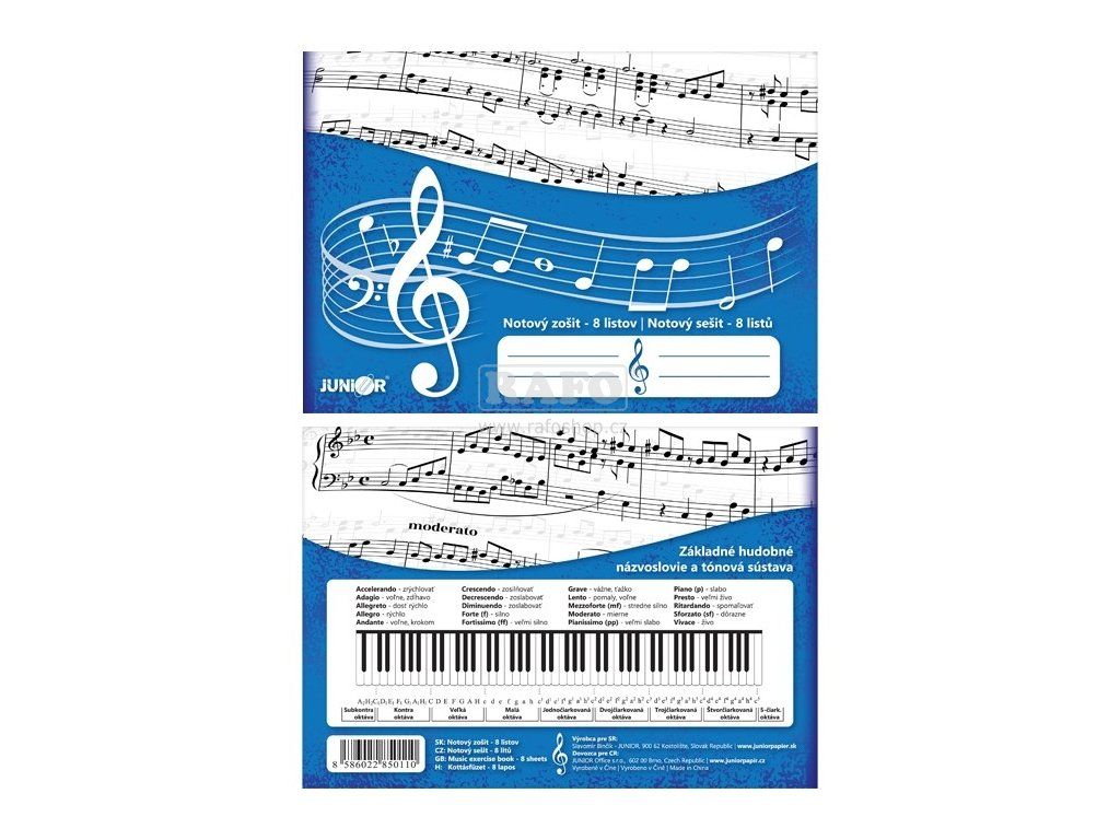 Notový sešit A5, 8 listů