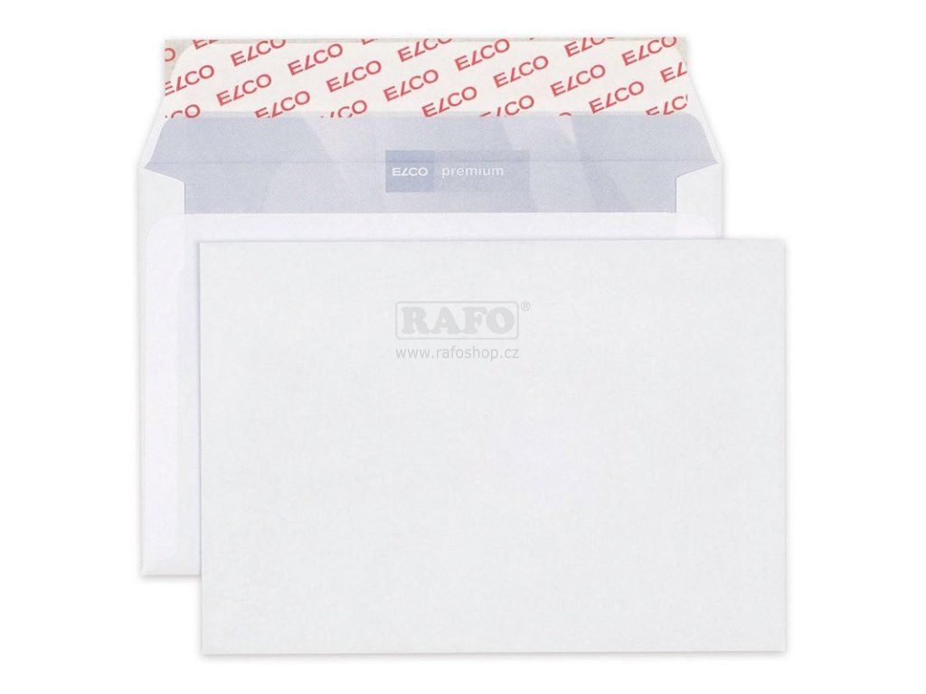 Švýcarské obálky ELCO Office se samolepicí páskou a vnitřním potiskem z kvalitního bílého papíru, 80 g, bez okna, formát C6 (114 x 162 mm), balené v krabici.Doplňkové parametry