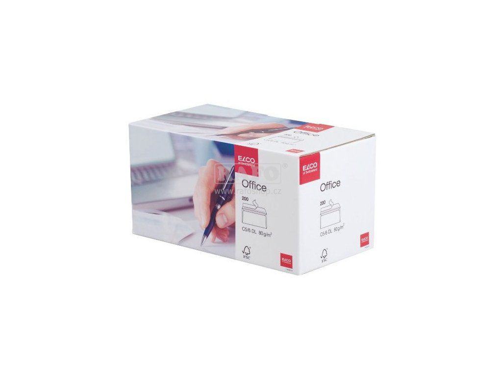 Švýcarské obálky ELCO Office se samolepicí páskou a vnitřním potiskem z kvalitního bílého papíru, 80 g, bez okna, formát DL (110 x 220 mm), balené v krabici.Doplňkové parametry