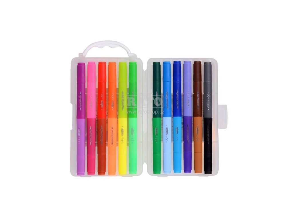 • Sada 12 oboustranných popisovačů v intenzivních barvách (celkem 24 barev) • Kulatý tvar fixu zajišťuje pohodlné vybarvování • Praktické pouzdo pro snadnou manipulaci • Šíře hrotu: 1,0 mm • v sadě naleznete 24 barevDoplňkové parametry