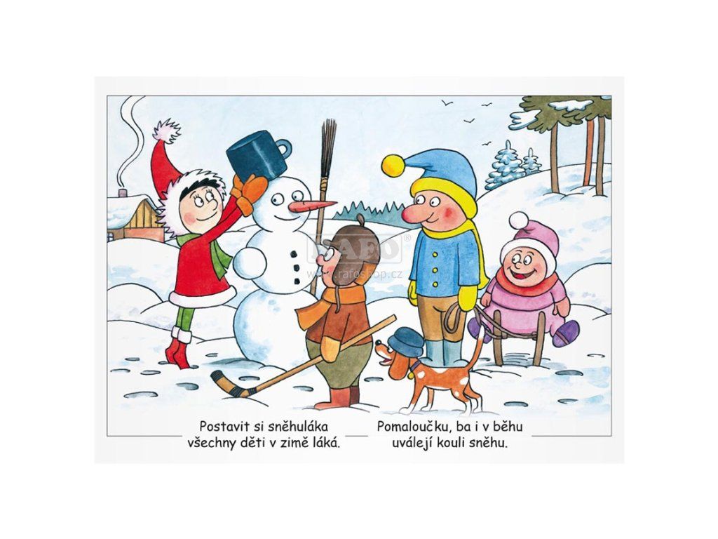 Dětské omalovánky MFP - Zima. Udělejte si pohodové odpoledne s dětmi a vybarvěte si obrázek. Tyto omalovánky jsou jednoduché s velkými obrázky, tudíž vhodné i pro ty nejmenší děti. Vybarvování obrázků pomůže rozvíjet řadu schopností a dovedností, zejména má velký vliv na jemnou motoriku ruky. Zakoupit si u náš můžete i kvalitní barevné pastelky. • Počet stran: 16 • Ilustroval: J. Pospíchal • Formát omalovánek: A5 • Počet obrázků: 8 (zpívání koled, stavění sněhuláka, sáňkování aj.) - U každého obrázku je Vánoční básnička.Doplňkové parametry