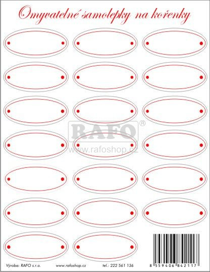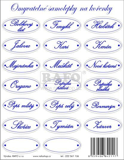 - Omyvatelné samolepicí etikety na kořenky, 18 druhů