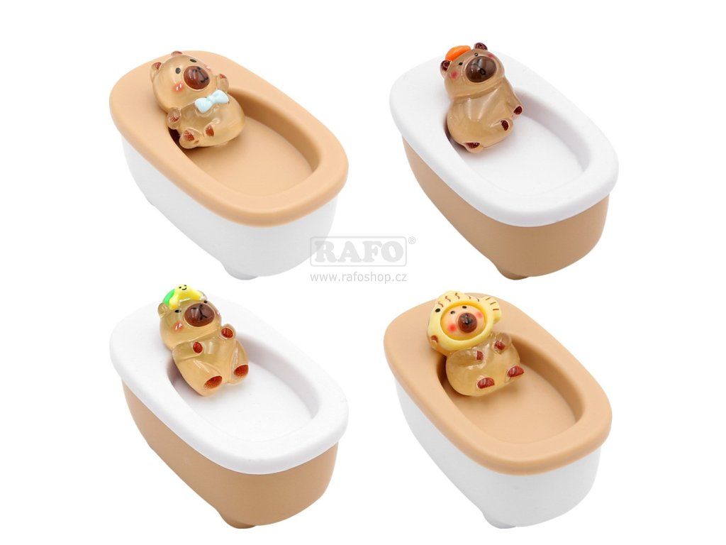 Ořezávátko na tužky a pastelky ve tvaru vany s capybarou. • otvor 8 mm • vhodné do školy i kanceláře • rozměry: 65 x 40 x 43 mm