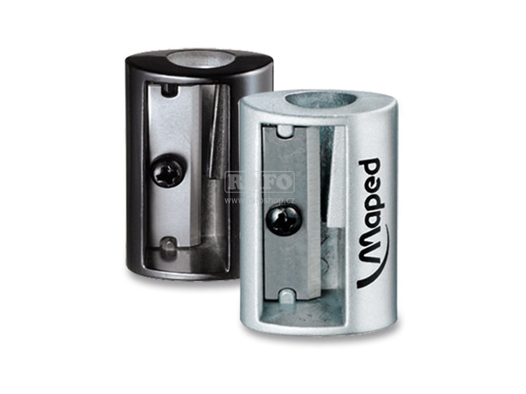 Kovové ořezávátko Maped s 1 otvorem. Mix barev - stříbrná, nebo černá. Barvu bohužel nelze vybrat.Doplňkové parametry
