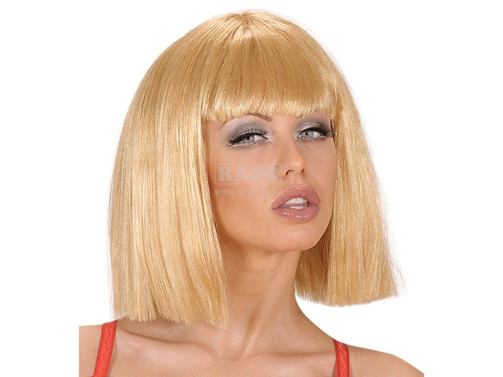 Karnevalová paruka showgirl mikádo, krátká s ofinou. Materiál: 100% polyester.Doplňkové parametry
