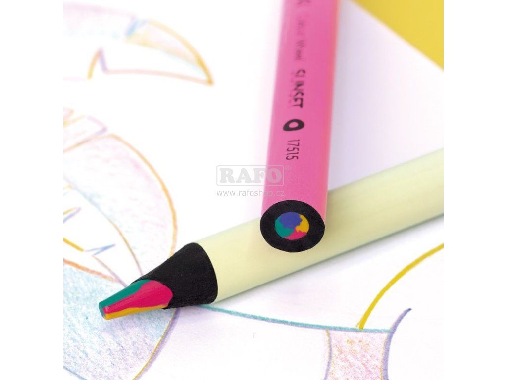 MAXI vícebarevná kulatá barvička ideální pro děti. Obsahuje 4 hlavní barvy: žlutá, růžová, zelená a fialová. průměr tuhy je 5 mm vytváří rovnoměrný tah a je odolná vůči zlomení díky LPS (Lead Protection System) dřevo černé lípy pochází z trvale udržitelných lesů.Doplňkové parametry